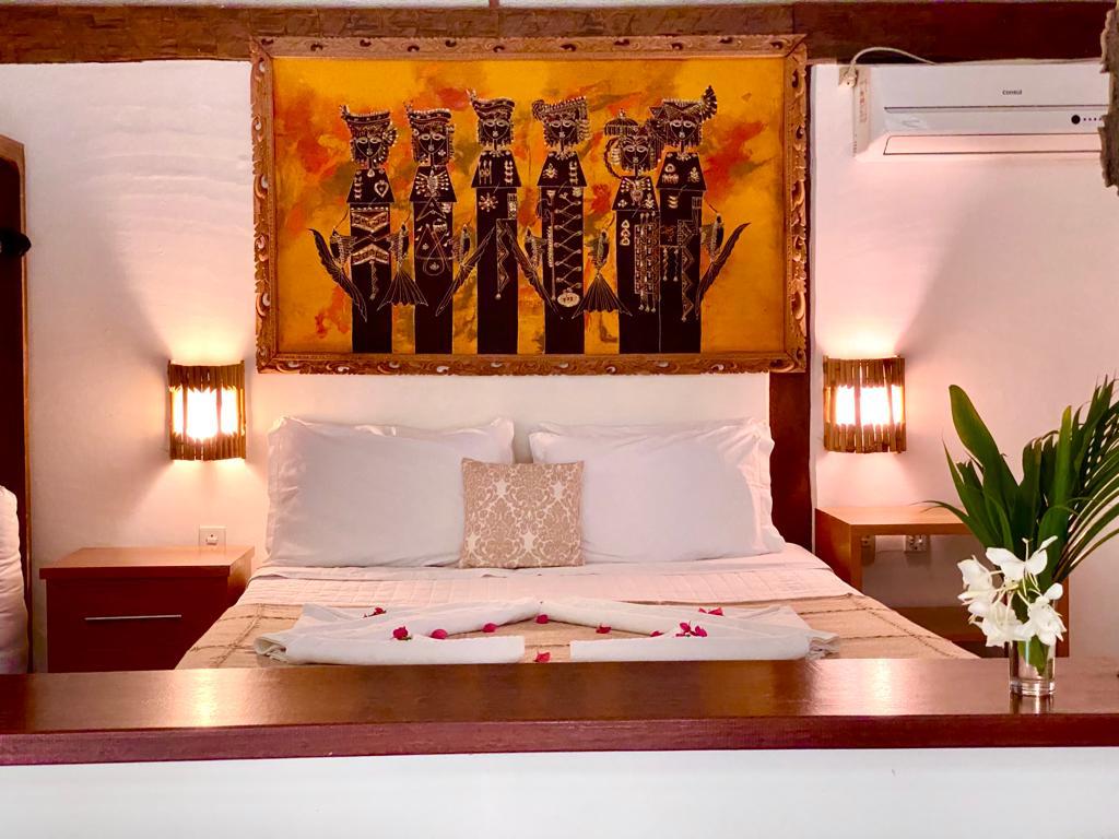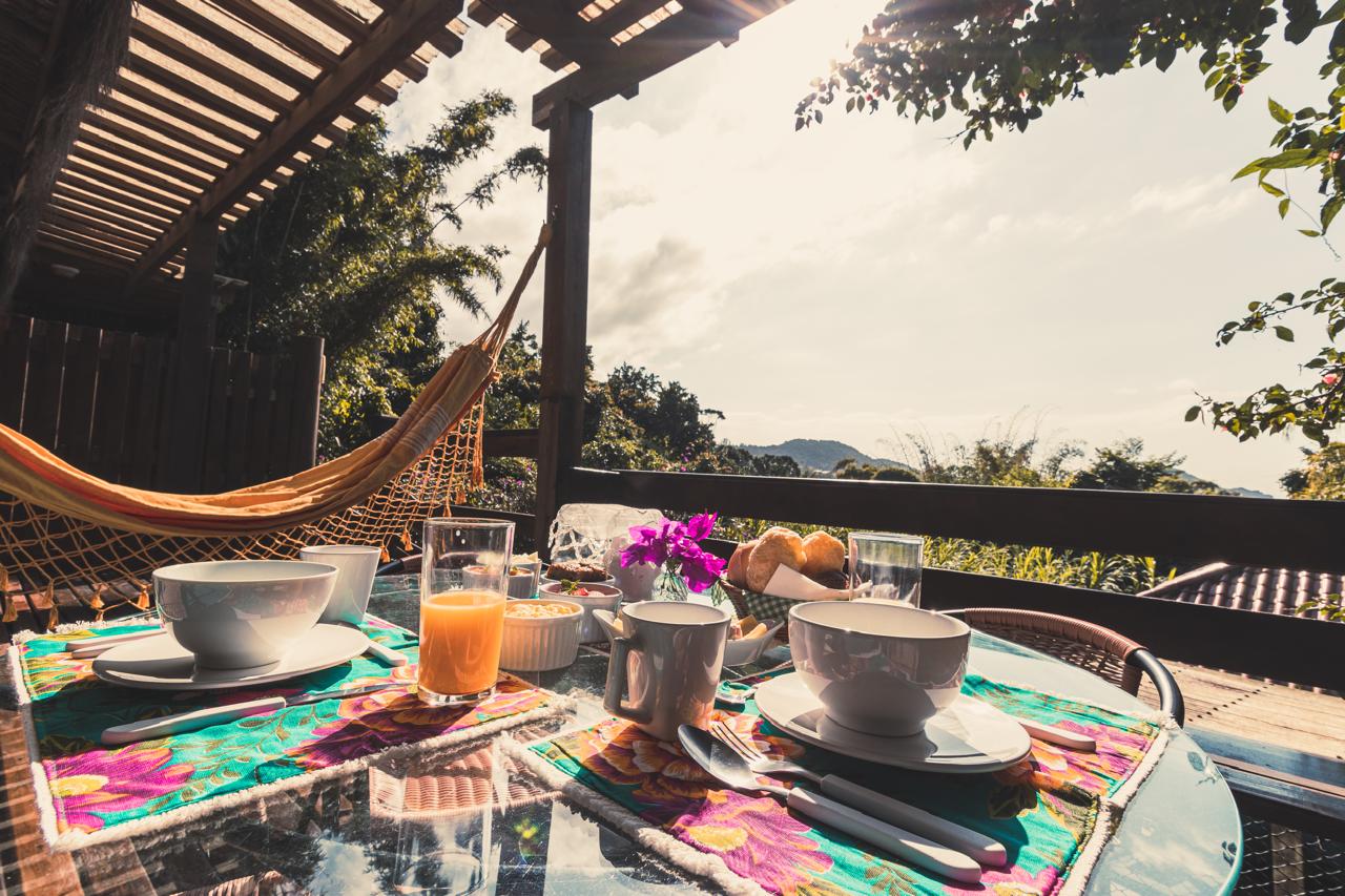 Área externa : Pousada rodeada por uma natureza exuberante , todas as cabanas possuem varanda com rede. Café da manhã servido na própria cabana com horário marcado. Serviços extras : cadeiras/ guarda sol / toalha de praia