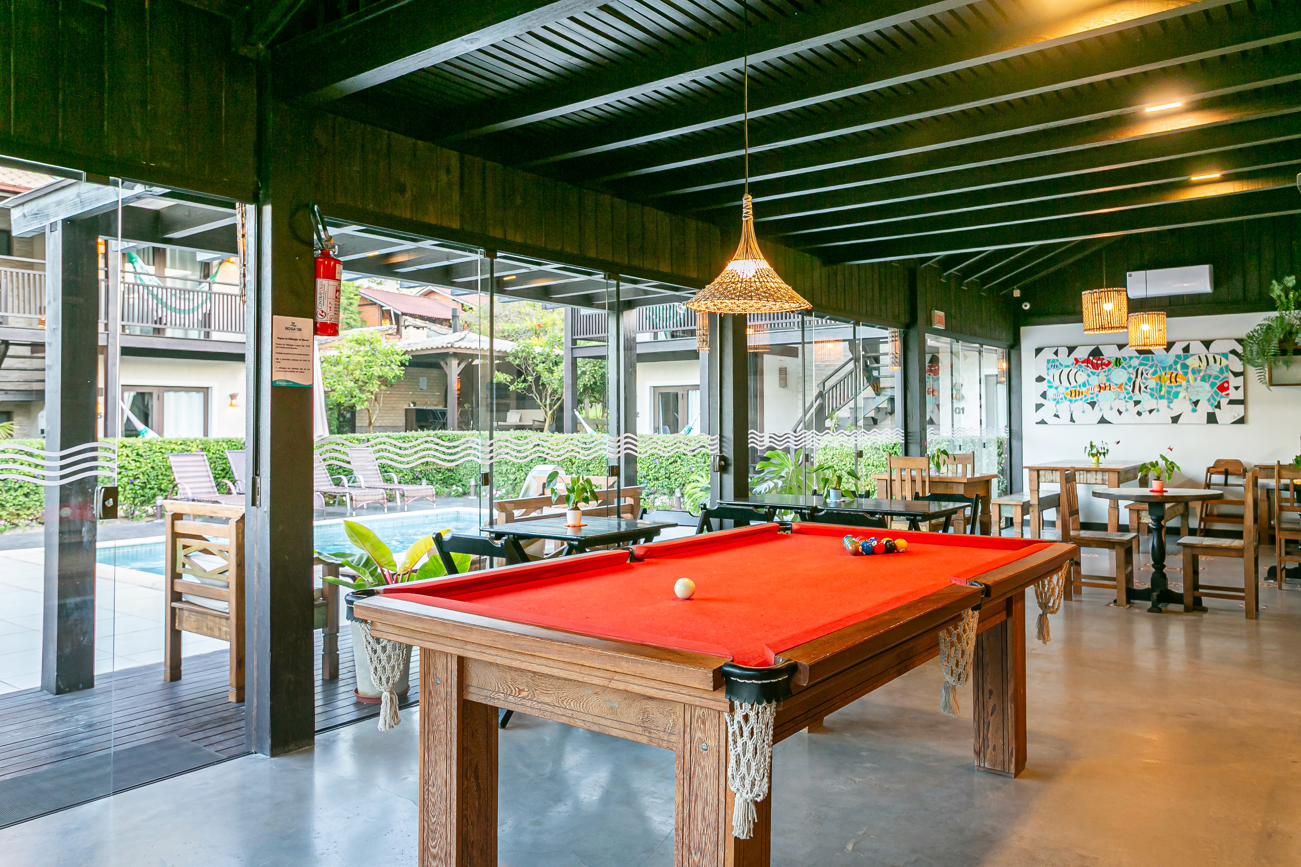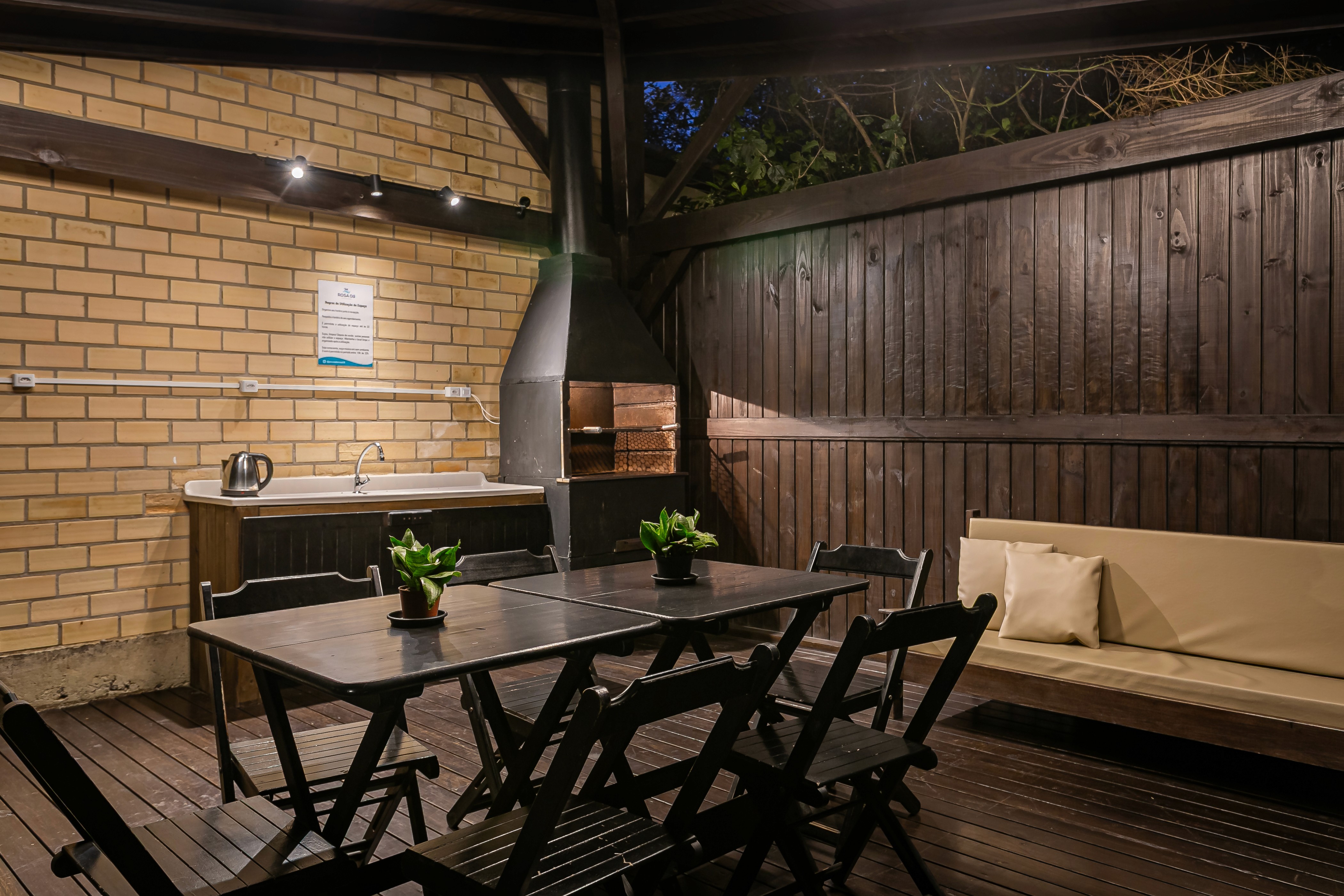 Área externa: Piscina com espreguiçadeiras, Área com churrasqueira, Sala de TV, Mesa de bilhar (sinuca), Área fit com tapetinhos para exercícios e kit liberação miofascial, Solário, Área Surf com rack para pranchas e varal para roupas de borracha, ducha externa. Serviços extras sem custo: Café da manhã Gourmet, Wi-fi, Estacionamento, Roupas de cama e Banho, Serviço de camareira diário. Serviços extras: Toalhas de piscina, Frigobar, Transfer, Pacote Momentos Especiais (decorações românticas, aniversário,...) Check-in: 14h Check-out: 10h